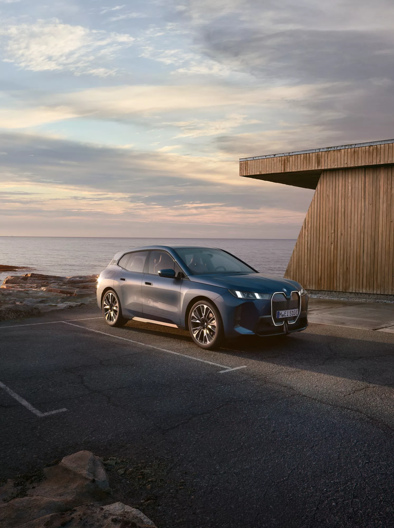 Новото BMW iX съчетава внушителните размери на BMW X с вълнуващи електрически характеристики на шофиране. С оптимално настроено окачване, то стабилно стои на пътя благодарение на големите си колела. Мощните двигатели и ниският център на тежестта правят автомобила изключително пъргав.